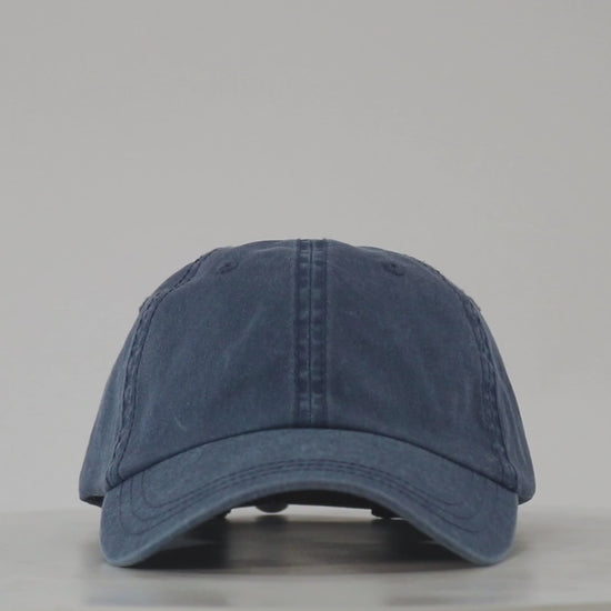 All hand-crafted with a special dye and washing process which results in unique variations of color from one hat to the next. Special consideration must also be taken when printing white ink on pigment-dyed cotton.