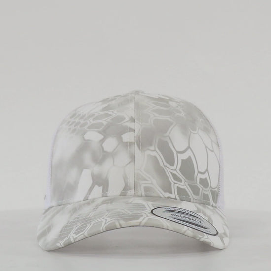 - Kryptek and Veil have a silver undervisor and the YP our-bar logo on the wearer's right side of the cap